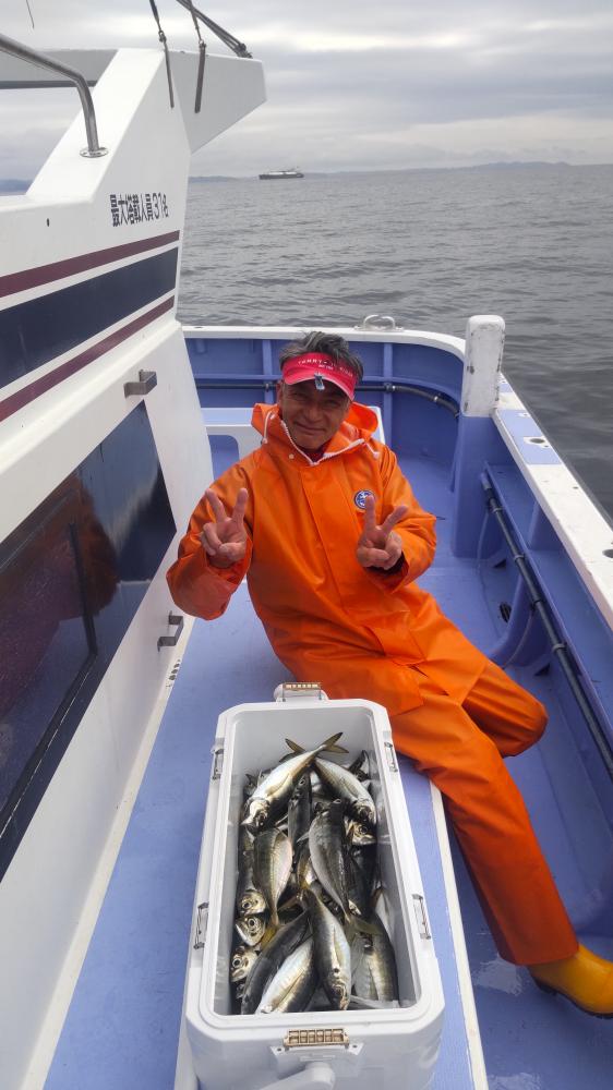 ショートアジ船で出船。魚に少し動きがありましたが、中型アジ主体で良型アジも交じってポツポツ当たりました。外道にサバ
